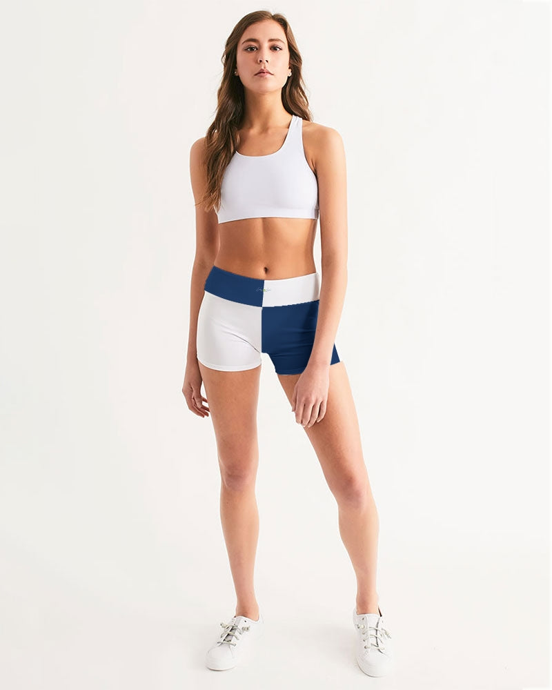 Blocks Navy Seas Women's Mid-Rise Yoga Shorts