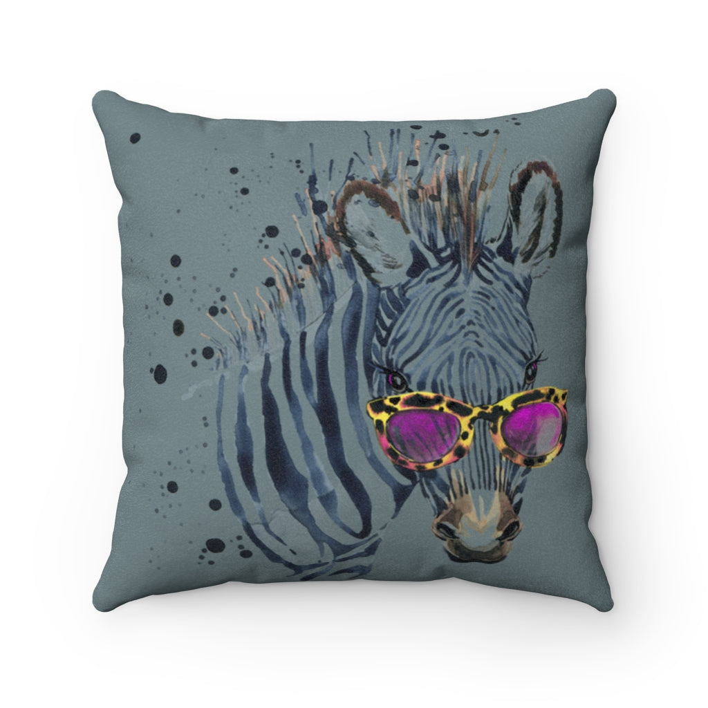 Elton Zebra Gray Faux Suede Square Pillow from Vluxe by Lucky Nahum