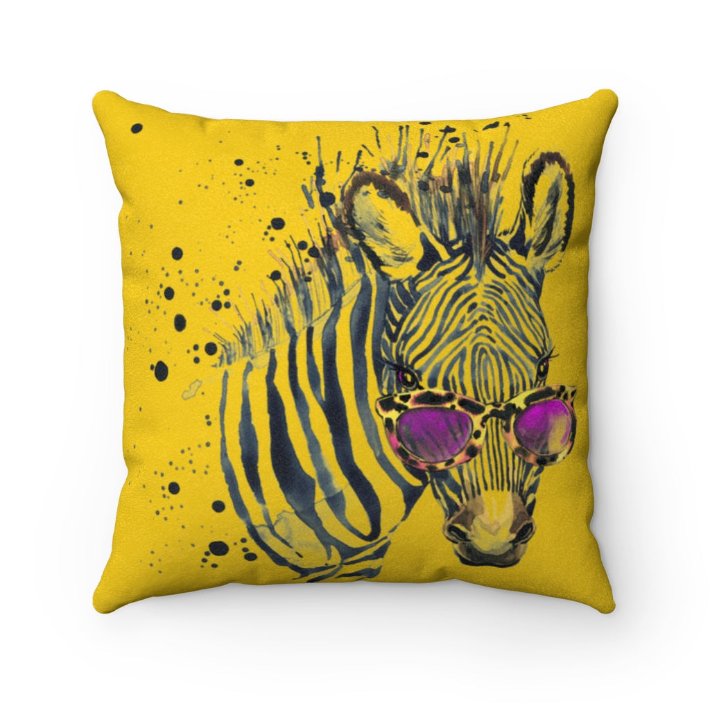 Elton Zebra Yellow Faux Suede Square Pillow from Vluxe by Lucky Nahum