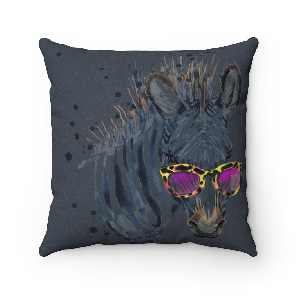 Elton Zebra Navy Faux Suede Square Pillow from Vluxe by Lucky Nahum