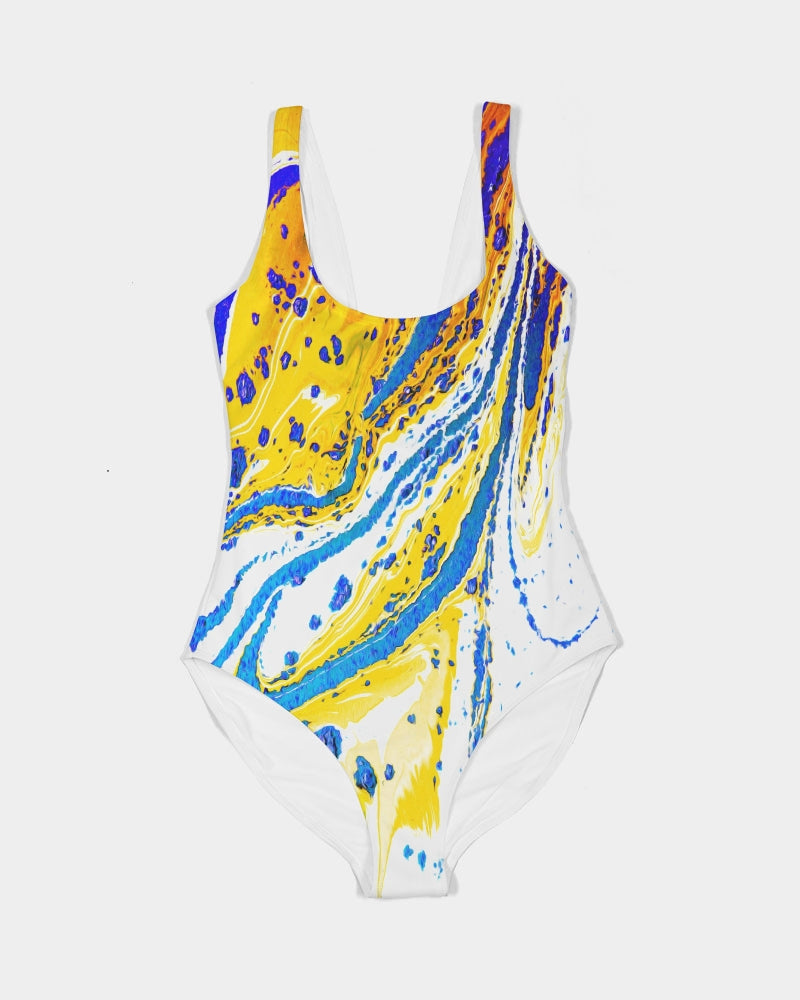 About The ArtSplash A Splash of color pleases the eyes and feeds the soul. Who hasn't wanted to take a few cans of paint and splash the pains on a wall or canvas? Product DetailsWith its simple scoop neck and modest cuts, our Women's One-Piece Swimsuit compliments all body types. Stretchy, padded, and built-in UPF 50+, this swimsuit offers excellent comfort, support, and UV protection.